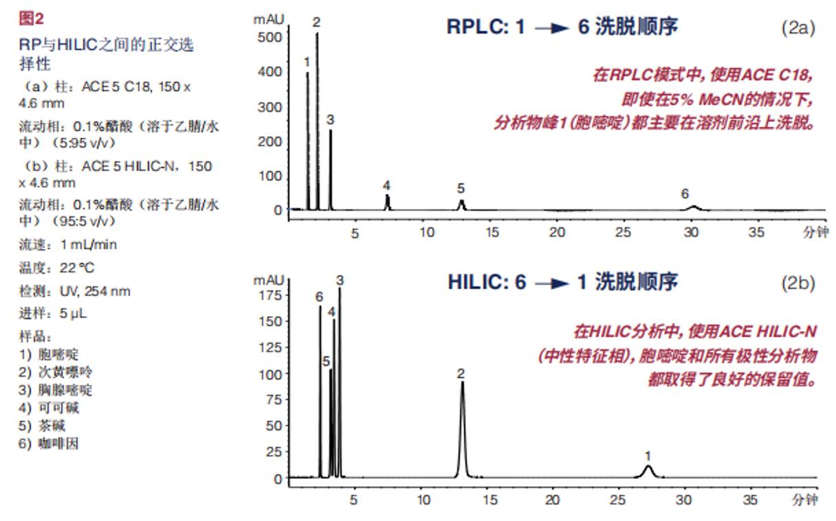 *堿性ACE HILIC-B相,能形成正電荷,對帶負電的酸性物質產生靜電吸引,而帶正電的堿基(堿性物質則)則被排斥。