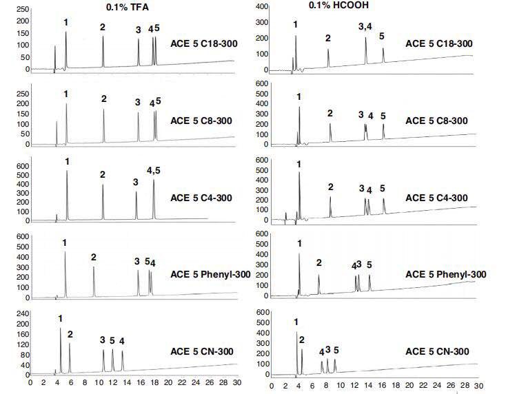 4,pH對多肽保留的影響:在反相色譜中, 多肽的分離一般在酸性環境下進行。