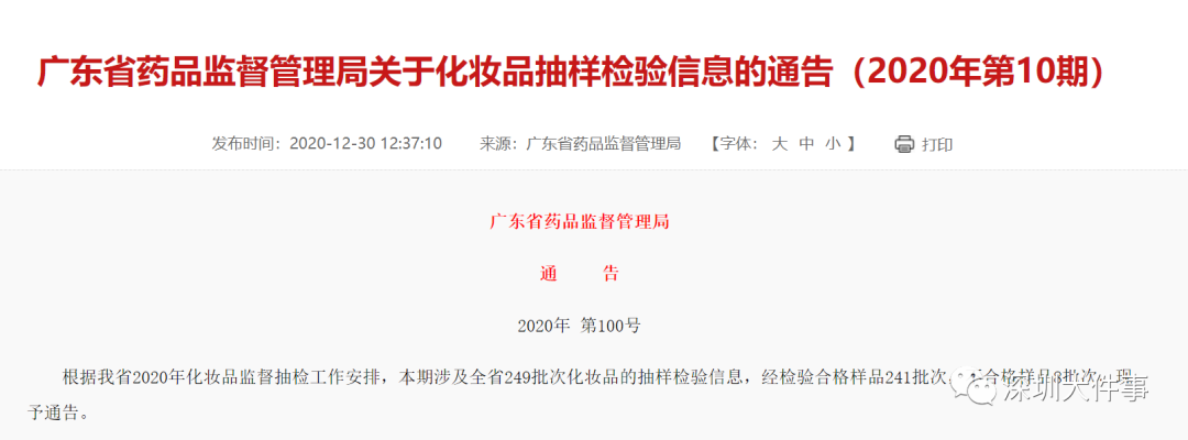 針對監(jiān)督抽檢中的不合格化妝品,廣東省藥監(jiān)局已組織省內(nèi)各相關(guān)市場監(jiān)督管理局依法對有關(guān)生產(chǎn)經(jīng)營企業(yè)進(jìn)行立案調(diào)查,責(zé)令生產(chǎn)經(jīng)營企業(yè)召回不合格產(chǎn)品,查清不合格產(chǎn)品的數(shù)量和流向;對核查為假冒的化妝品要追查相關(guān)經(jīng)營企業(yè)的進(jìn)貨渠道,嚴(yán)厲打擊生產(chǎn)銷售假冒偽劣化妝品違法行為。