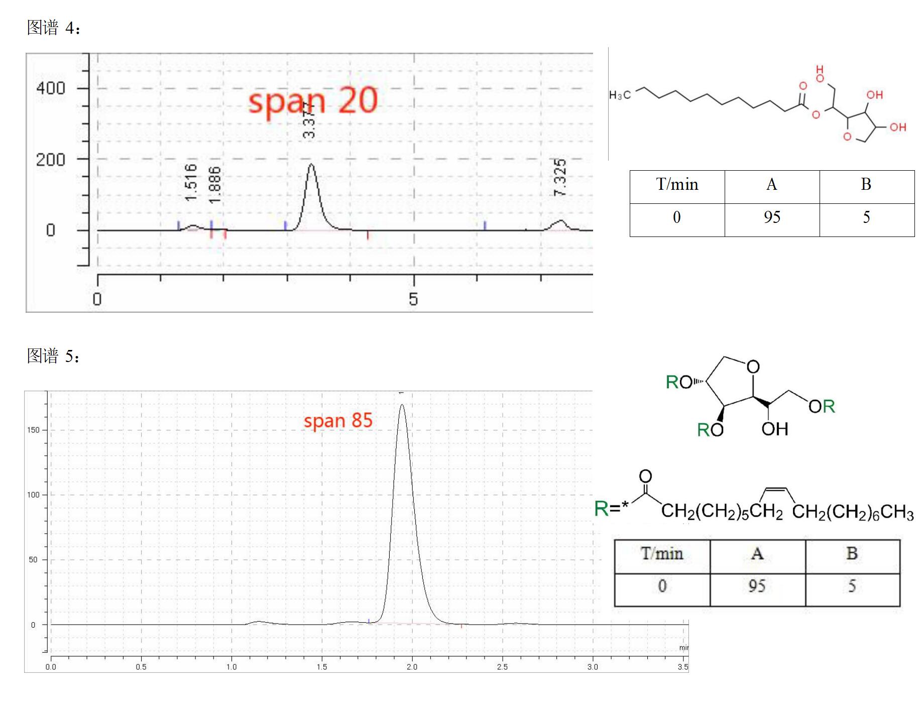 說明:Mercury Tween 色譜柱可用于司盤 20、85 及蓖麻油的檢測,此類物質(zhì)保留較強(qiáng),如洗脫能力不足易發(fā)生峰變形。