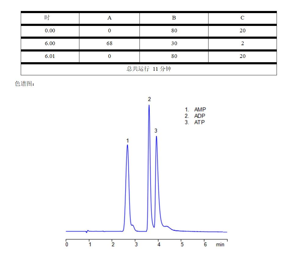 Comixsil HCS 與 HAX 關(guān)于 AMP ADP ATP 的 HPLC 分析研究 App ID: FLM-C240010 色譜柱:Comixsil HCS 3u 100*3.0mm (貨號(hào): FMD-HCS3-YONU) 流速:0.6 mL/min 檢測(cè)波 :275nm 流動(dòng)相:A:水 B:乙腈 C:200mM 乙酸 (pH5.5)