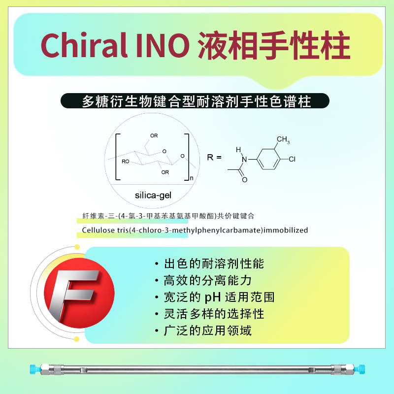 綜上所述,Chiral INO手性柱是一種高性能、廣泛應用的手性色譜柱,適用于多種手性化合物的分離和分析。在使用時,應嚴格遵守操作規程,并注意色譜柱的維護保養以延長其使用壽命。
