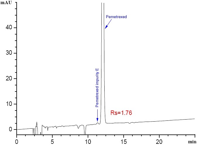 進樣體積:20μL(供試品中培美曲塞濃度為 0.24mg/mL,對映體雜質濃度為 0.16μg/mL)