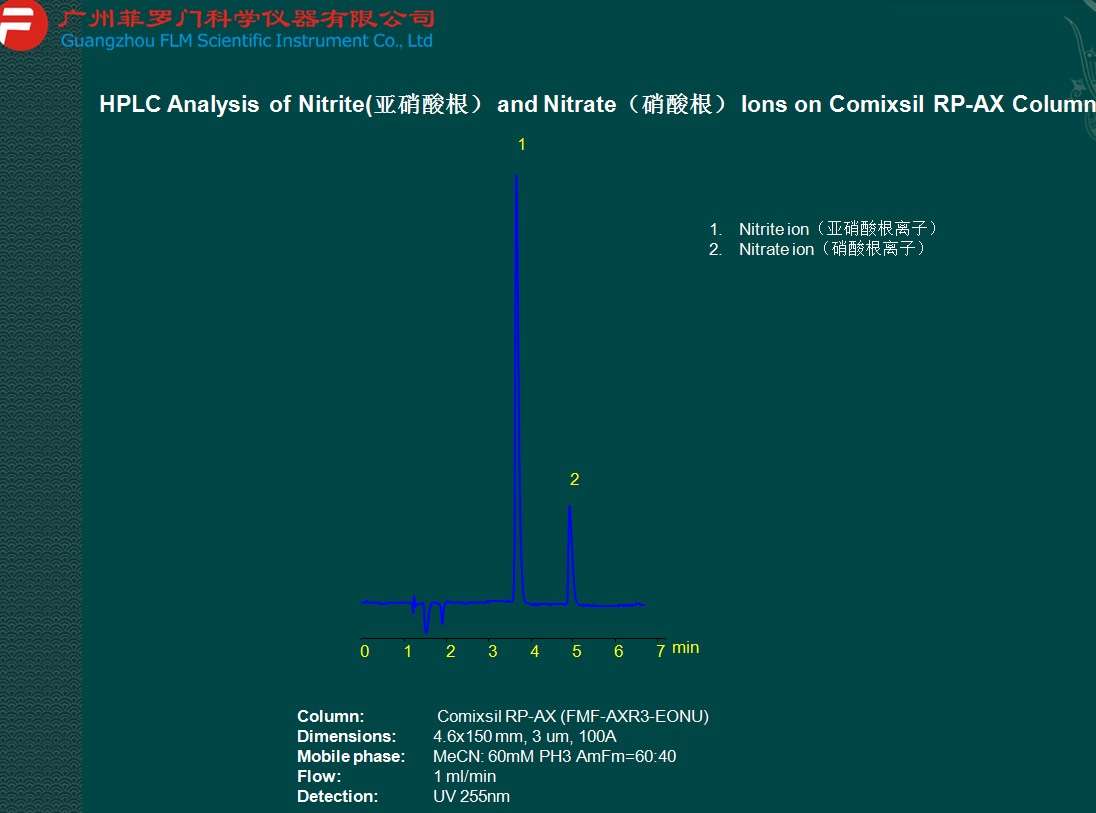亞硝酸根離子檢測(基因毒性和元素雜質(zhì)相關(guān)應(yīng)用圖譜)菲羅門液相柱