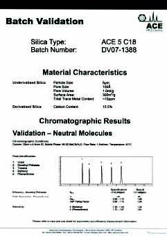 ACE和ACE Excel色譜柱由于使用超純試劑和嚴格的制造工藝控制(可以獲得具有均一表面特性的高純度硅膠固定相載體)而具有出色的可重現性。